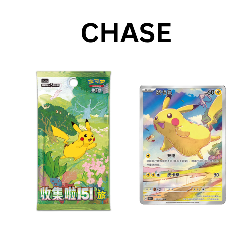 This is the first set in the collect 151 series which contains a simplified Chinese exclusive Pikachu card